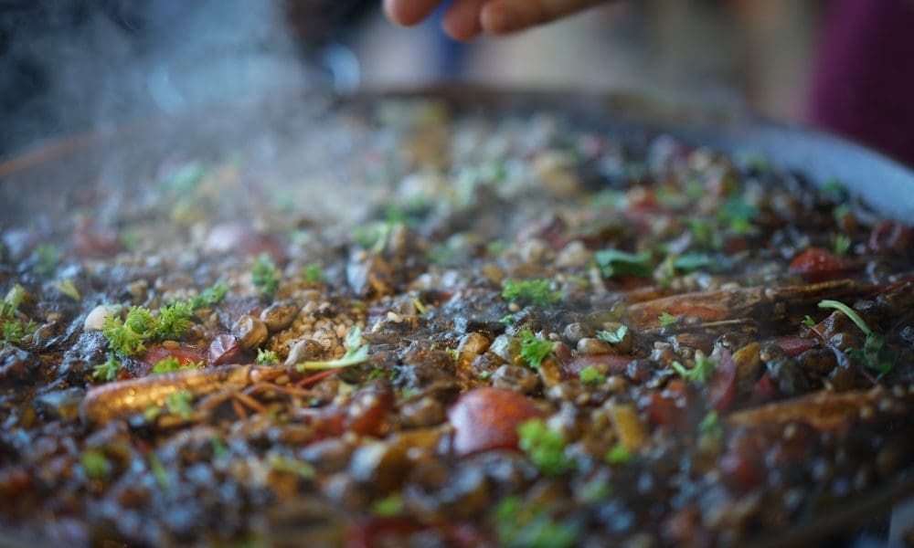 - Fideua de chipirones y setas con Alioli de ajo negro