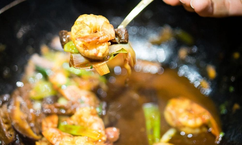 - Brocheta de gambas con cilantro y chile